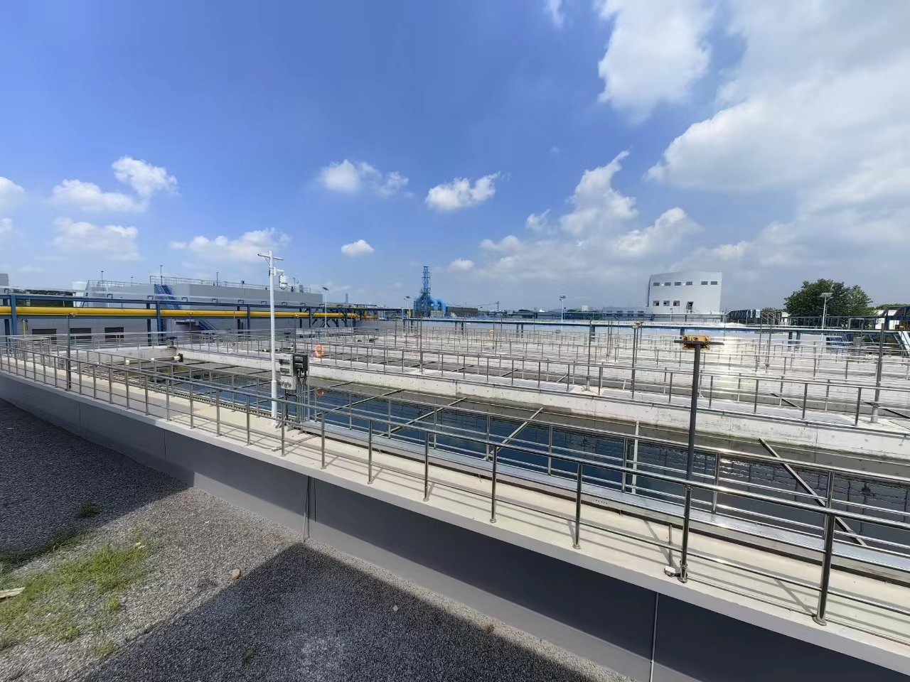 污水处理厂占地约100亩,设计处理水量为40000 t/d,分为两股不同的水源进入处理系统。来自晶科能源(26000 t/d)废水进入除氟沉淀池,以去除废水中的氟化物。其他工业企业废水则先进入粗格栅及提升泵站+细格栅及沉砂池,这两股污水在均质调节池中混合均匀,以确保后续处理过程的稳定性。项目显著提升了园区污水处理能力,有效化解园区内周边污水处理厂的生产压力,对保护周边水域及巢湖流域的水生态环境将起到积极作用。同时,有力保障了园区内多个重大招商引资项目的顺利投产,为属地的经济建设作出贡献。