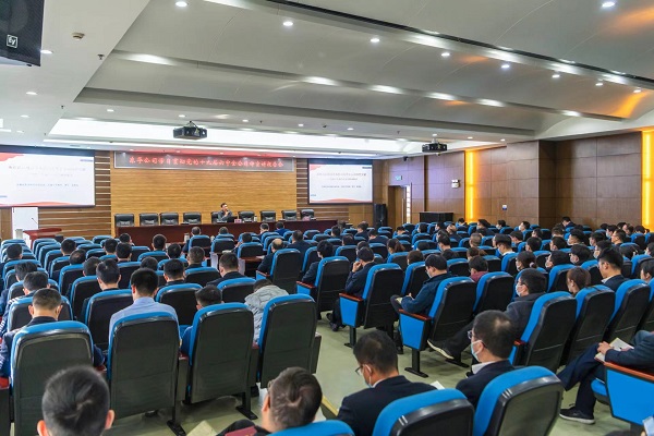 12月1日上午,天行平台_天行(中国)一站式服务平台举办学习贯彻党的十九届六中全会精神宣讲报告会,安徽省委讲师团高端专家、安徽大学教授、博士生导师裴德海应邀作全会精神解读,公司党委书记、董事长李立新主持会议并讲话,公司领导班子成员、各基层党组织书记、各分工会主席、广大党员和基层团员共200余人参会。